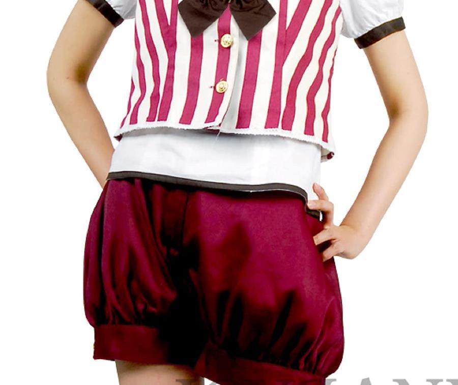 素材:成分 トップス・ベスト:綿100% パンツ:綿35% ポリエステル65% 【5Lサイズ】 ■ベスト 着丈:約50cm 肩幅:約40cm 袖ぐり:約53cm バスト:約104cm ウエスト:約96cm ■インナー 着丈:約56cm 肩幅:約41cm 袖丈:約25cm 袖口:約34cm バスト:約104cm ウエスト:約90cm ■パンツ 着丈:約46cm ウエスト:約88cm 股上:約31cm カフス幅:約5cm 裾まわり:約62cm ベスト・インナー・パンツ・リボンのセット 男性も着用いただける大きなサイズです。 ベストがついた、パンツのセットアップです。 スクエアネックのインナーはパフ袖、襟元やお袖口、裾にブラウンのラインで アクセントをつけました。 脇ファスナーでの着用になります。 センターのリボンは取り外し可能、安全ピンで留める仕様です。 衿の付いたストライプ柄のベストにはゴールドのボタン、衿と裾にレースを飾りました。 ノータックのハーフ丈かぼちゃパンツにもゴールドのボタンつき☆