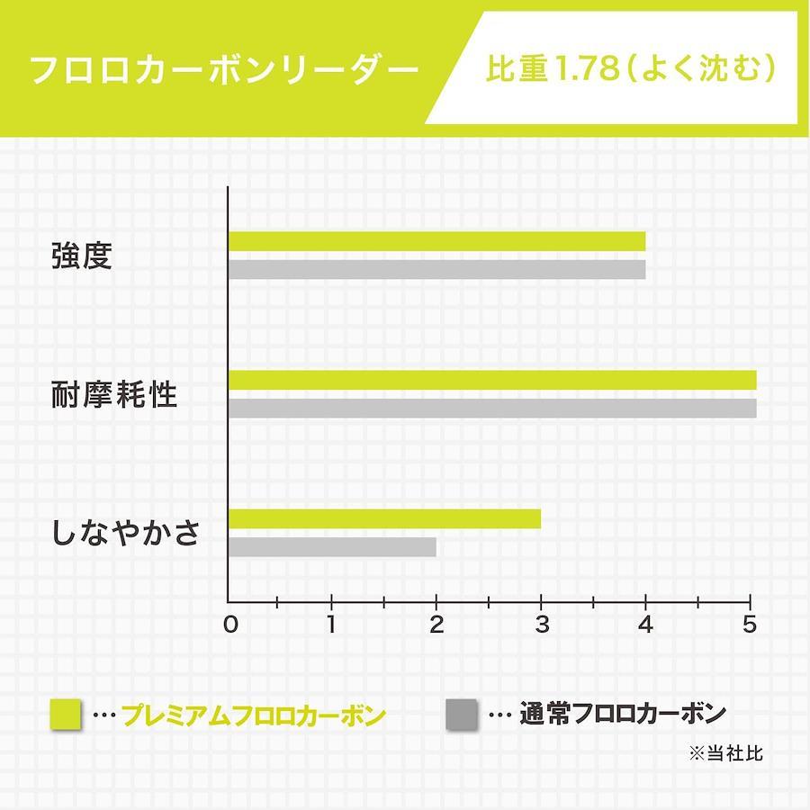 プレミアムフロロカーボンを採用することで、感度、強度、耐摩耗性などを最高レベルで実現。伸びの少なさは、ボトム系やキビキビ系ルアーにぴったり。さらに新開発の薄型平行巻きスプールにより、高いクオリティも獲得したフロロ製ショックリーダーです。