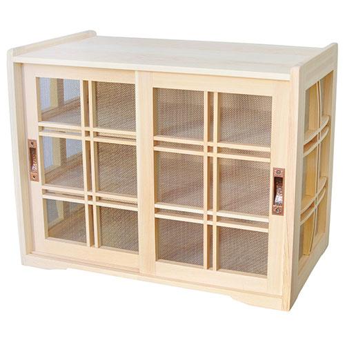 はい帳とは、自然の風を利用して料理を常温で保存する入れ物です。扉・壁面を網張りにしてあるため、虫からも保護できます。冷蔵庫が出来る、ずっと以前から 日本の台所の必需品でした。電気を使わない事、「冷たく硬くしたくない食品の保管」に最適であることからふたたび見直されつつある製品です。☆木曽のひのき材を使い、ひのき材を熟知した地元の職人が仕上げた逸品です。☆ひのきの木目の美しさと質感を生かし、白木(無塗装)仕上げとしています。☆お茶のセット・おやつ入れなどにも活用できる他、煮物の保管にも大変便利です。☆昔から引き継がれてきた知恵と造りをカタチにしています。☆引き戸は取り外して手入れすることが可能です。