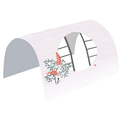 ドーム型に料理をおおう、演出掛紙です。料理箱と合わせてのご使用をお勧めします。☆丸窓の障子を開いた隙間から、料理がうかがえる演出です。料理への期待感を盛り上げます。☆無蛍光紙の上に雲竜和紙風の印刷を施しております。※印刷により多少の色みの違いが生じます。
