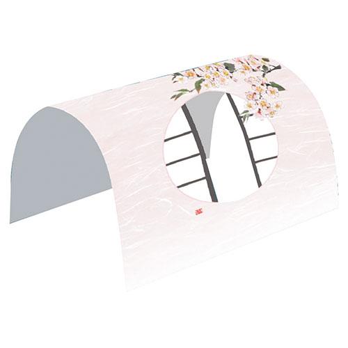 ドーム型に料理をおおう、演出掛紙です。料理箱と合わせてのご使用をお勧めします。☆丸窓の障子を開いた隙間から、料理がうかがえる演出です。料理への期待感を盛り上げます。☆無蛍光紙の上に雲竜和紙風の印刷を施しております。※印刷により多少の色みの違いが生じます。