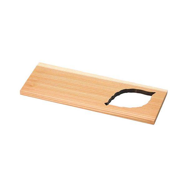 部分的に図形をレーザー抜きした杉板を黒の木枠にセットした料理皿。