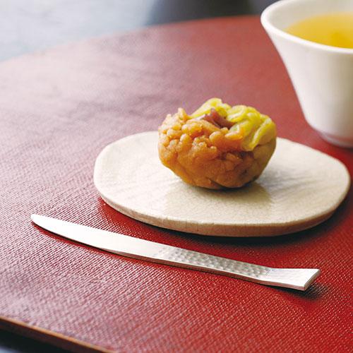 槌目が美しい、ステンレスの菓子切です。