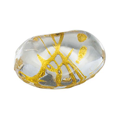 ベーシックでコロンとかわいいカタチのガラス箸置きです。金色に美しく光り、高級感を醸し出します。☆透明ガラスの底に箔貼りしてコーティングをしています。☆お祝いの席にもぴったりです。☆飲食店様、キッチン雑貨店様に。