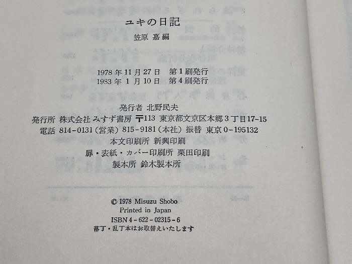 商品名:ユキの日記 病める少女の20年 みすず書房