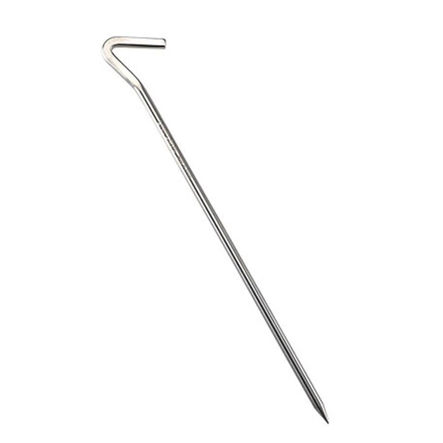 鍛造タイプと比べて強くて軽量!そして錆びにくい!ステンレス鋼極太φ7mmで曲がらない強靭性を持つ。ヘッド部を平打ち加工し強度もアップ!長さ30cmでタープの設営におすすめ!