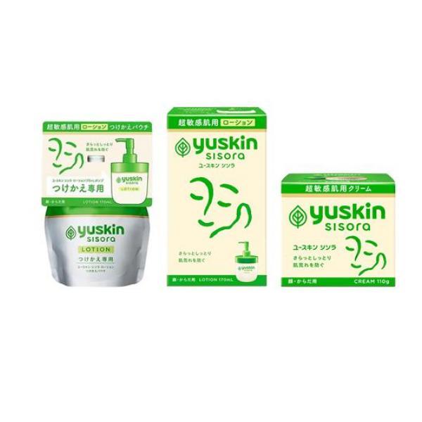 製品の特徴●yuskin sisora LOTION ユースキン シソラ ローション 超敏感肌用●医薬部外品●うるおい成分しその葉エキス配合の、顔・からだ用保湿ローション。●低刺激でベタつかない、乳白色の保湿ローションです。●外部刺激に敏感なピリピリ肌にうるおいを与え、バリア機能をサポートします。●塗り始めると水のように変化するローションが、すーっとなじんで、さっぱり。うるおってさらさらの肌へ導きます。●肌なじみがよいマイクロエマルション処方。(乳化粒子が細かく、角層すみずみに浸透)●液ダレせず、のびが良いので全身に塗りやすい。※つけかえパウチは、ユースキン シソラ ローション 170mLポンプ専用です。●販売名:薬用ユースキンSローションa