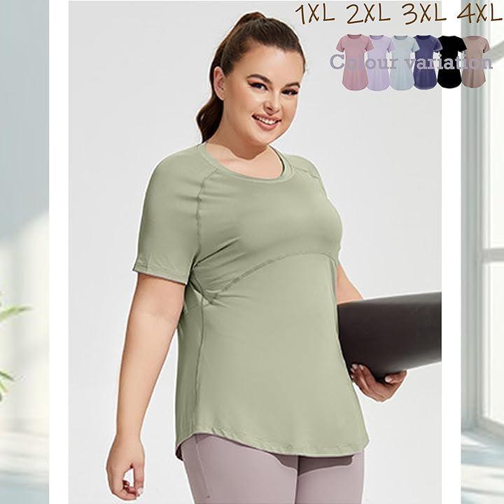 「サイズ」プラスサイズの1XLサイズ~4XLサイズ・着丈は69cm~73.5cmのスポーツチュニックです。
