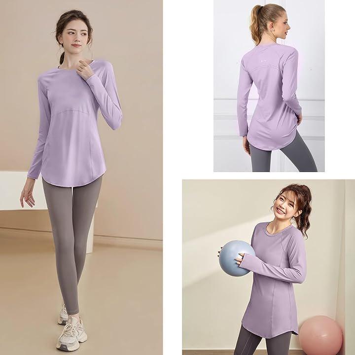 「ロング丈」お尻が隠れる丈長めのヨガウェアは体型カバーに役立ちます。
