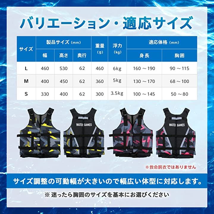 「快適なフィット感」WATER GAMESのシュノーケリングベストは、体にぴったりとフィットし、スタイリッシュな見た目と快適な動きを実現。