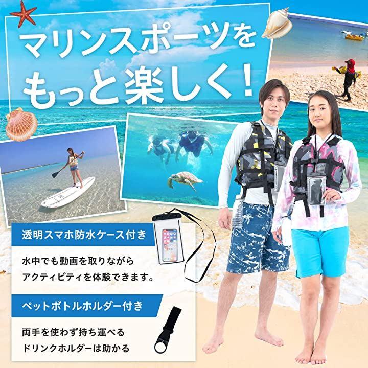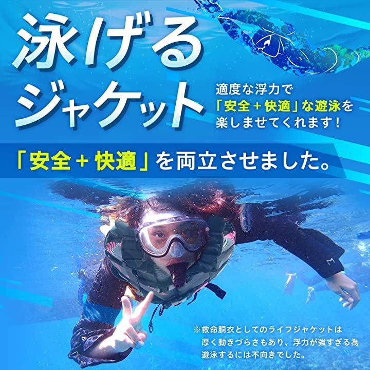 「より安全・快適に使用する為の4つの機能」1.上半身の動きやすさ、フィット感を高める3Dバック2.視認性を高める反射プリントを採用3.通気性抜群で良く乾く内側メッシュ仕様4.もしも時に引き上げることのできるセイフティーハンドルライフジャケットはかさばるから荷物になるので大変。