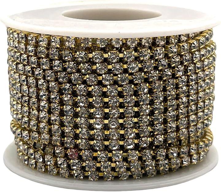 「バリエーション」 2.0mm / 2.5mm / 2.8mm 「商品詳細」1ロール10m / ストーンサイズ:2.0mm / 2.5mm / 2.8mm / 1mにつき約400粒 / 約340粒 / 約300粒 / 材質:真鍮(チェーン)、ガラス(ストーン) / カラー:ゴールド