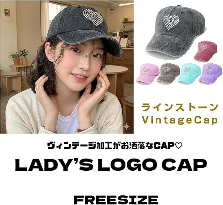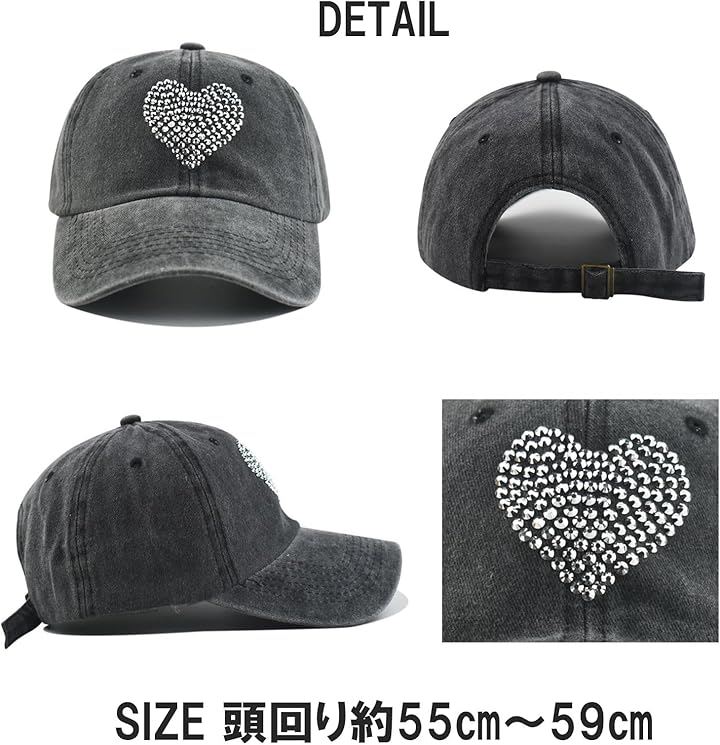 ヴィンテージ風の風合いと輝くラインストーンロゴが可愛い。