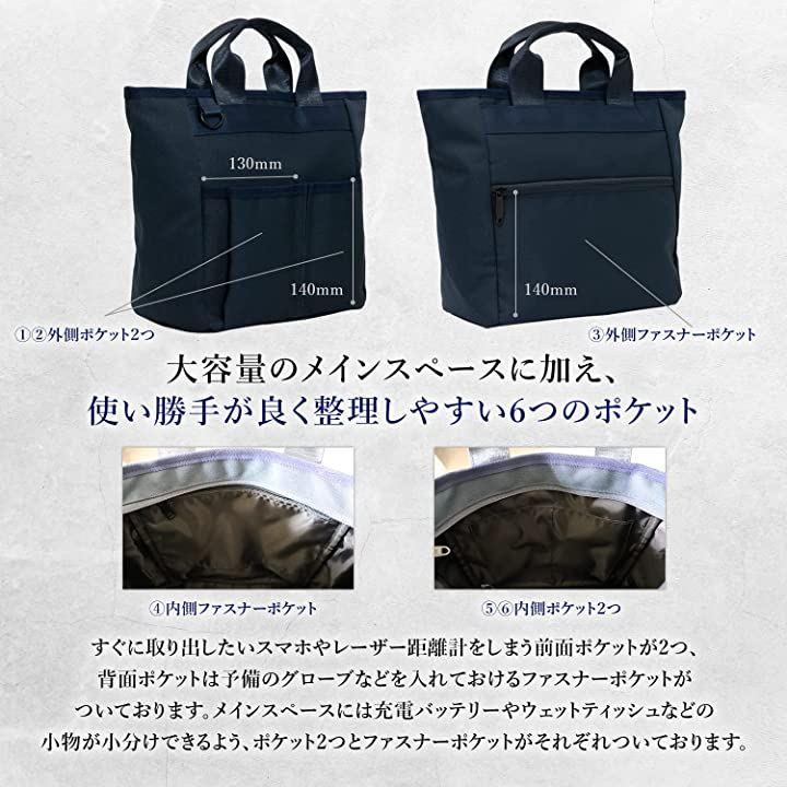 内側2つのポケットには充電器やウェットシート等の小物を収納し、内側ファスナーポケットには鍵や小銭入れなどの貴重品を入れておけば安心してラウンドに集中することが出来ます。