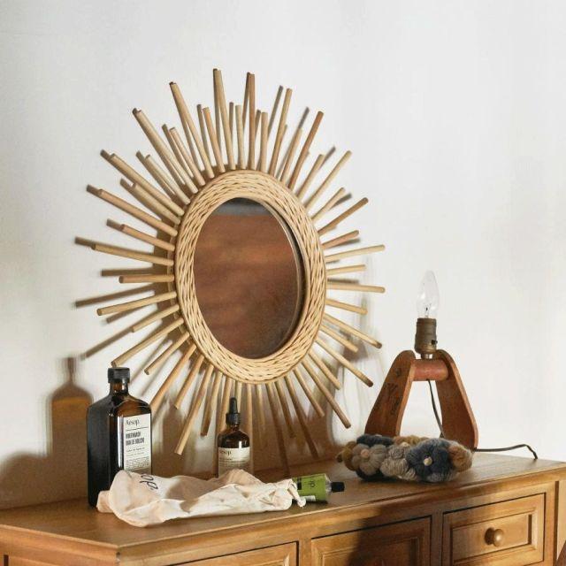■軽い素材のラタン天然素材の「ラタン」は何と言っても【軽い】のが特徴。取扱いがとってもラクなので、壁掛けに最適な素材。気軽に、好きな場所にラタンミラーを飾ってみてください。