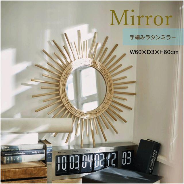 〈製品規格〉【商品サイズ】W60×D3×H60cm【材質】ラタンラッカー塗装3mmミラー※色味は天然素材の為個体差があります。ラタンは性質上、毛羽立ち、染み(導管や繊維)、割れがある場合があります。天然素材を使用しておりますのでご了承ください。【原産地】インドネシア【組立】完成品