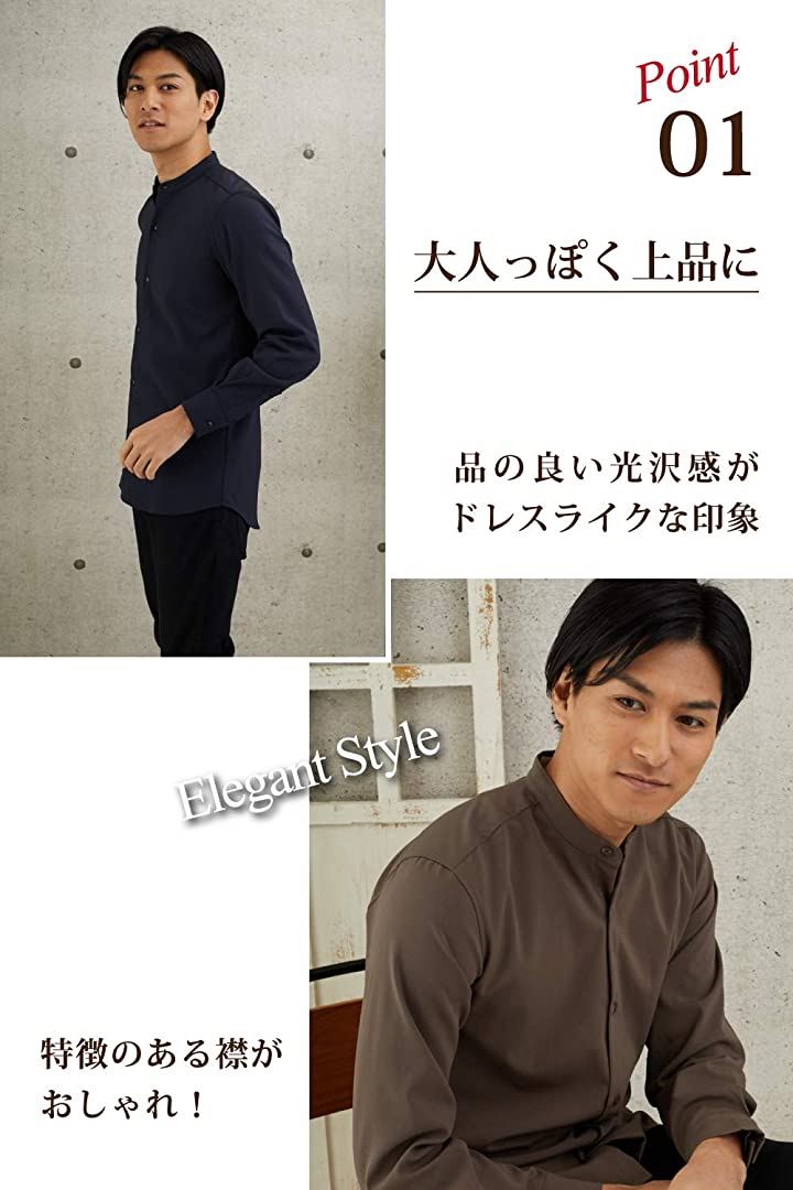 大人っぽく上品に見えるレギュラーフィットのバンドカラーシャツは、トレンドに左右されず、長くご愛用していただけます。