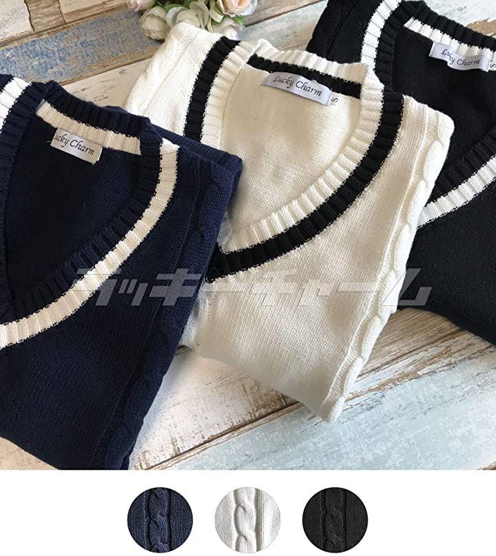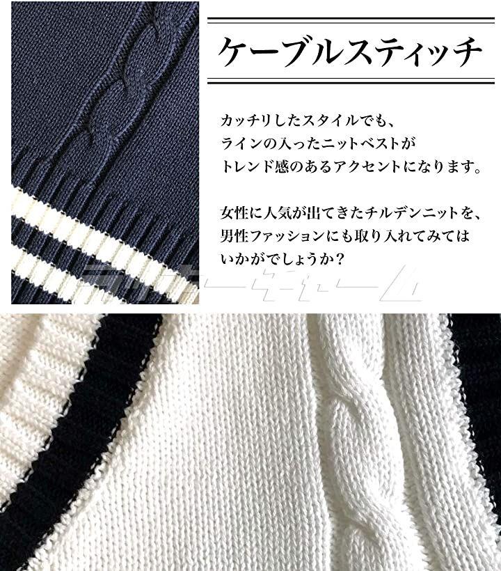 ・*ケーブルステッチ(縄編み)の入ったVネックニットベストです。