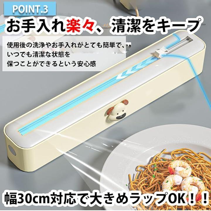 シンプルなデザインのラップカッターは、スライド式でスムーズにラップカットが可能。