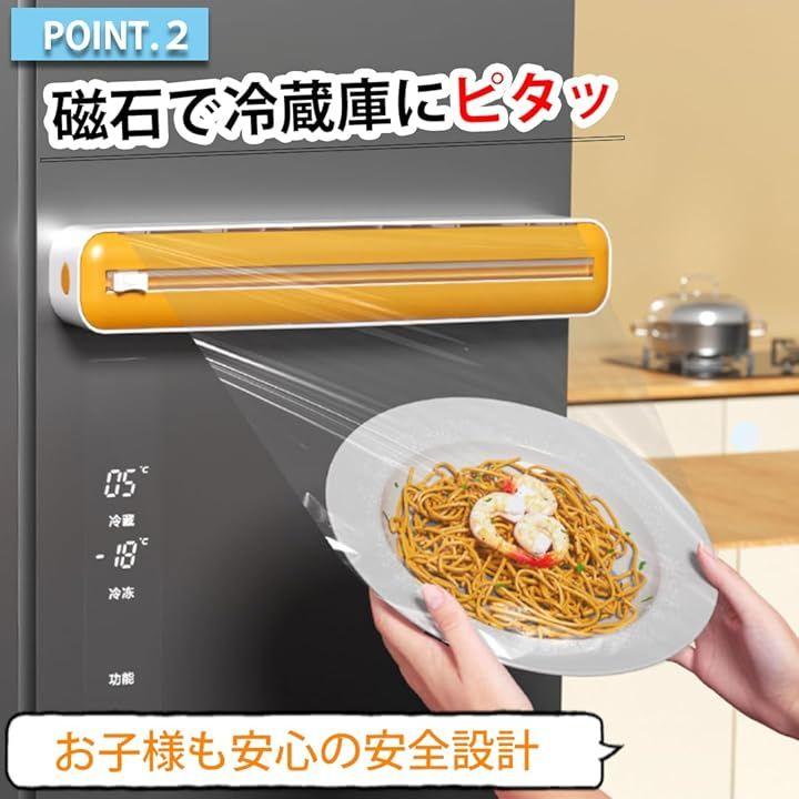 スライドカット機能を搭載したラップカッターは、残った料理の保存や野菜の包装、小分け包装や料理準備に欠かせないキッチン便利ツールです。