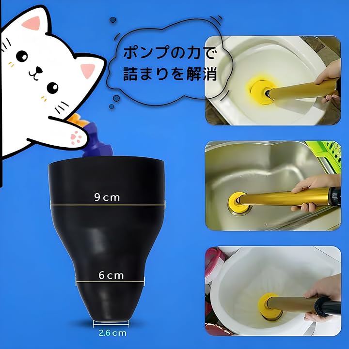 吸引ポンプで使いやすい:すっぽんタイプの構造と異なるつまり解消道具で、初めてでも扱いやすい設計。