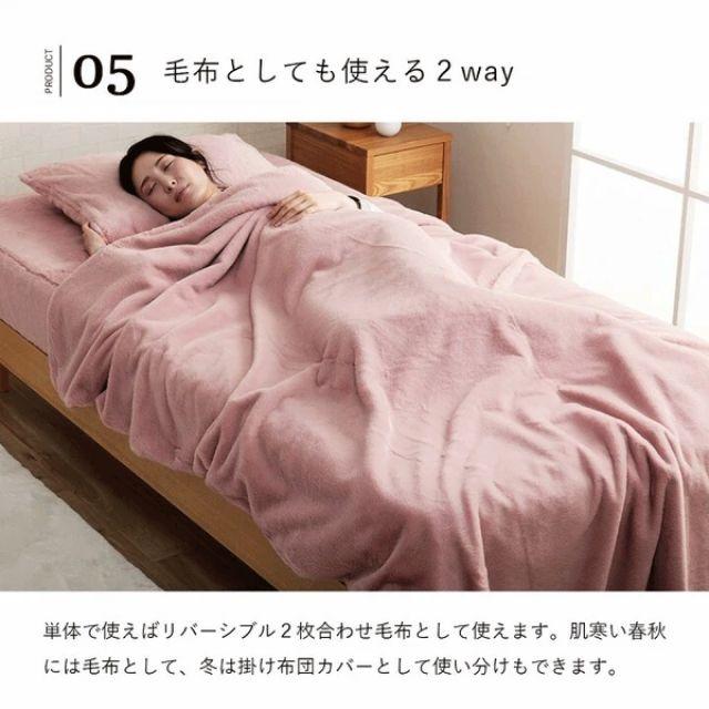 ◎フェイクファーは毛が抜けにくいマイヤー織りで、毛足の長さは長すぎず使用感がほどよい約10mmを採用しました。◎裏地には柔らかく、肌触りの良いフランネル生地を使用しています。◎両面使用可能なリバーシブルタイプです。着脱簡単な全開ファスナー付きで、洗濯の時に非常に便利です。◎掛け布団を固定するひもが6か所ついています。通常サイズより10cm長いロングサイズです。洗濯機での丸洗いが可能なので清潔にご使用いただけます。