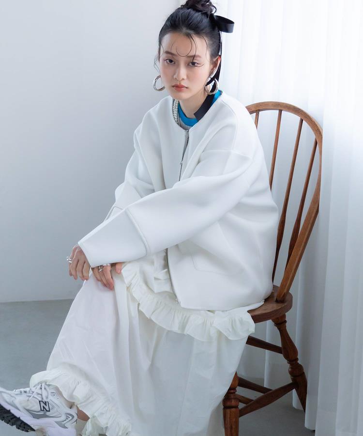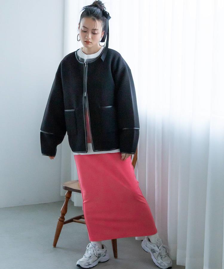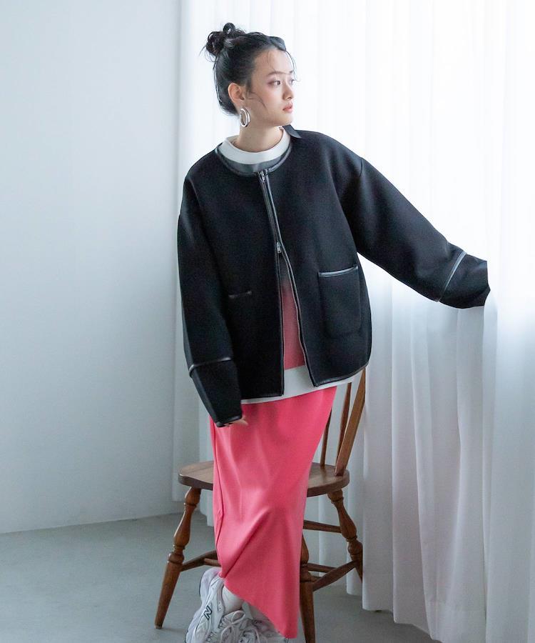 どんなコーデにでも1点投入しやすく、着回しの効くアウターです。