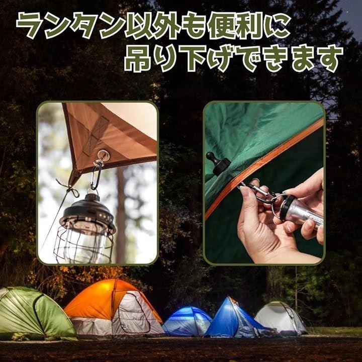 「ランタン以外にも」小型扇風機や衣類かけ、小道具を吊り下げることができます。