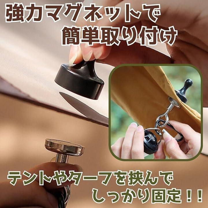 「様々な場所に吊り下げ可能」テントやタープ越しからマグネット吸着で固定できるアウトドアフックです。