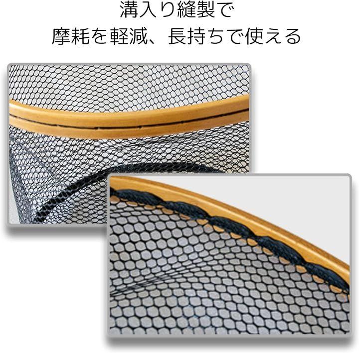 「軽量設計」このランディングネットは、軽量な木製フレームを採用しており、長時間の釣りでも疲れにくく、快適に使用できます。