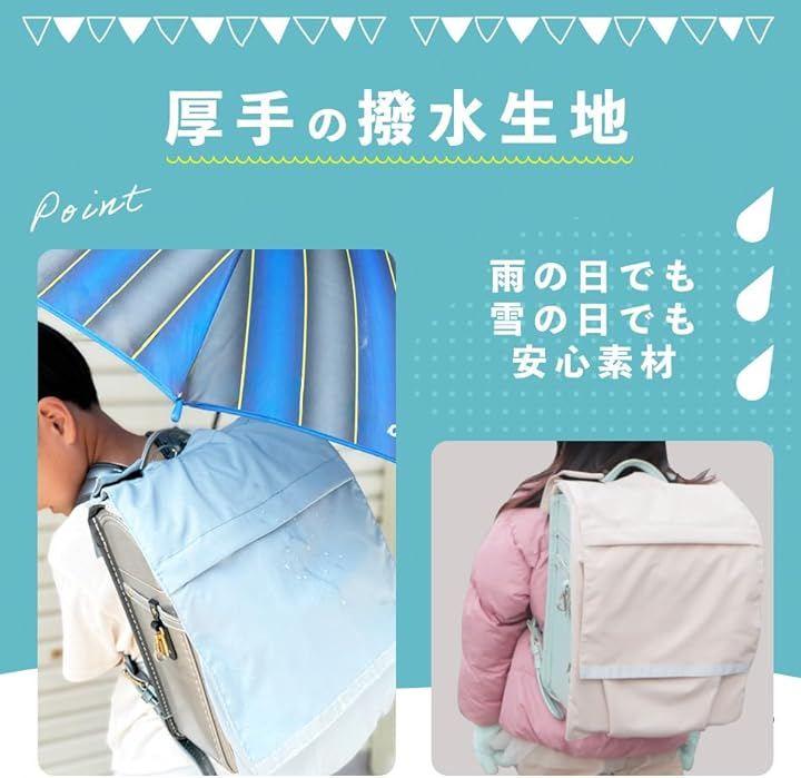 「厚手の撥水生地」やわらかく厚みのある撥水生地を使用。雨や傷を防ぎます。