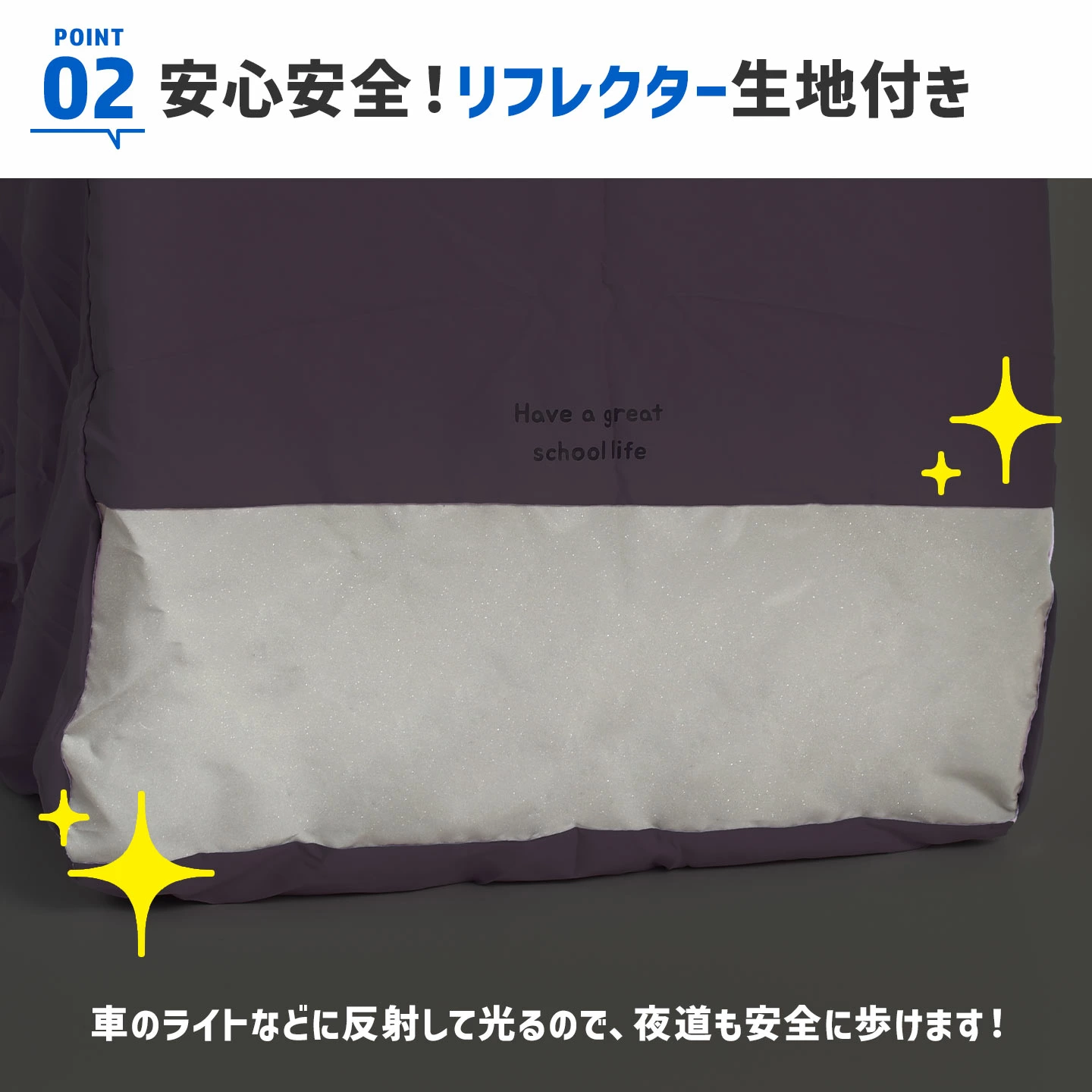 【ランドセルカバー】雨の日も安心!撥水加工のランドセルカバー。サッとかぶせるだけで、ランドセルをしっかりガード。お子さまでも簡単に取り付けられます。カバーを付けることで、隙間からの雨の侵入を防止。突然の雨にも安心です。一体型収納袋付きで、ランドセルに取り付けたままカバーを装着できて便利!紛失防止にも◎さらに、車のライトに反射するリフレクター付きで夜道の安全もサポート。男女問わず使えるデザインが豊富で、通園・通学にぴったりのアイテムです。