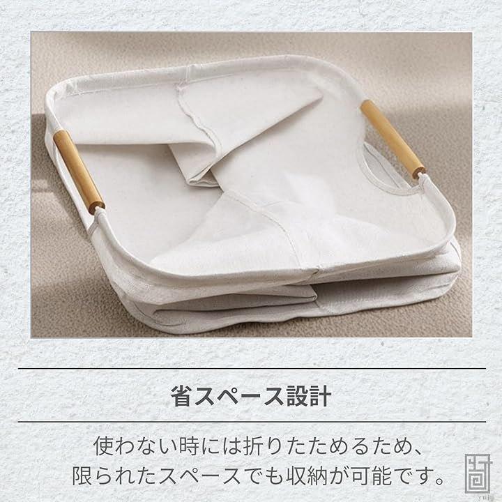ランドリーバスケット 折り畳み式 洗濯物入れ 軽量 持ち手付き ホワイト