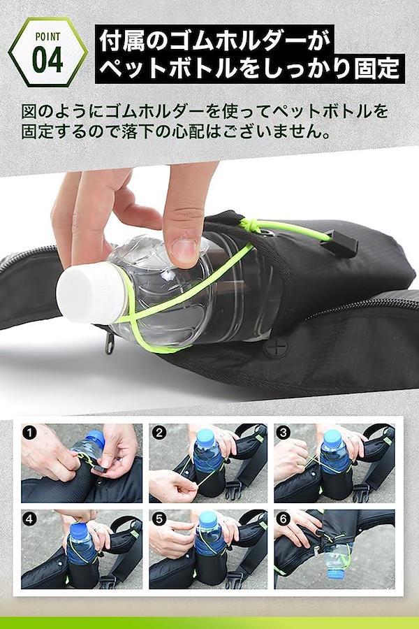 上の図を見ながら付属のゴムホルダーでペットボトルを固定すれば、走っている際にも