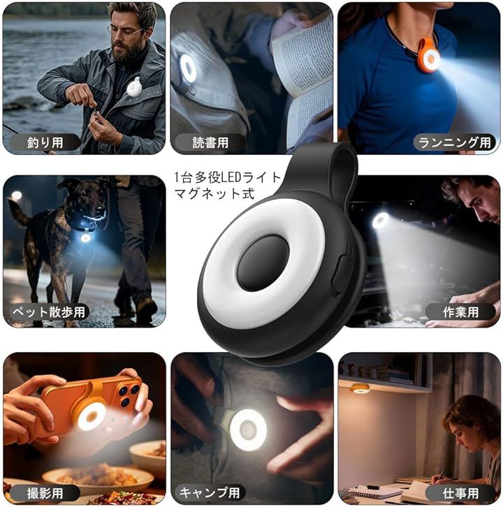ランニング ライト 1台多役 クリップライト マグネット式 5段階調光可能 USB充電 コンパクト 軽量 懐中電灯 小型 作業用 ウォーキング 夜間 夜道 作業/釣り/読書/撮影など適用