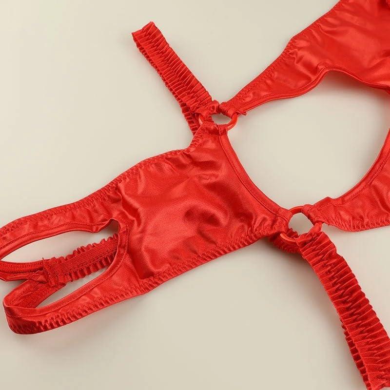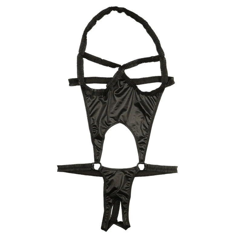 [ラ ポーム] フェリカ生地 光沢感 艶やか 柔らか セクシー オープンバスト 股ワレ プレイスーツ ランジェリー コスチューム MサイズとLサイズ