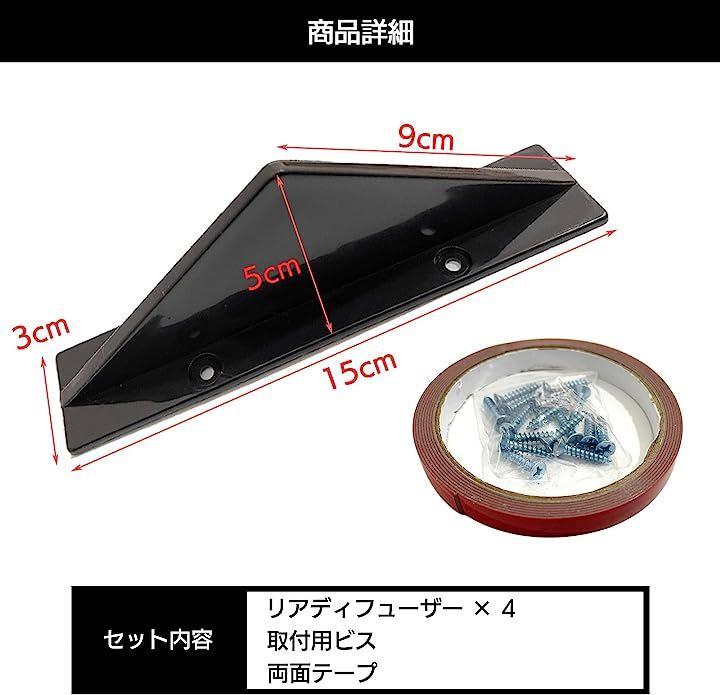 シャークフィン型のデザインで、取り付けも簡単なリアディフューザー4個セットです。