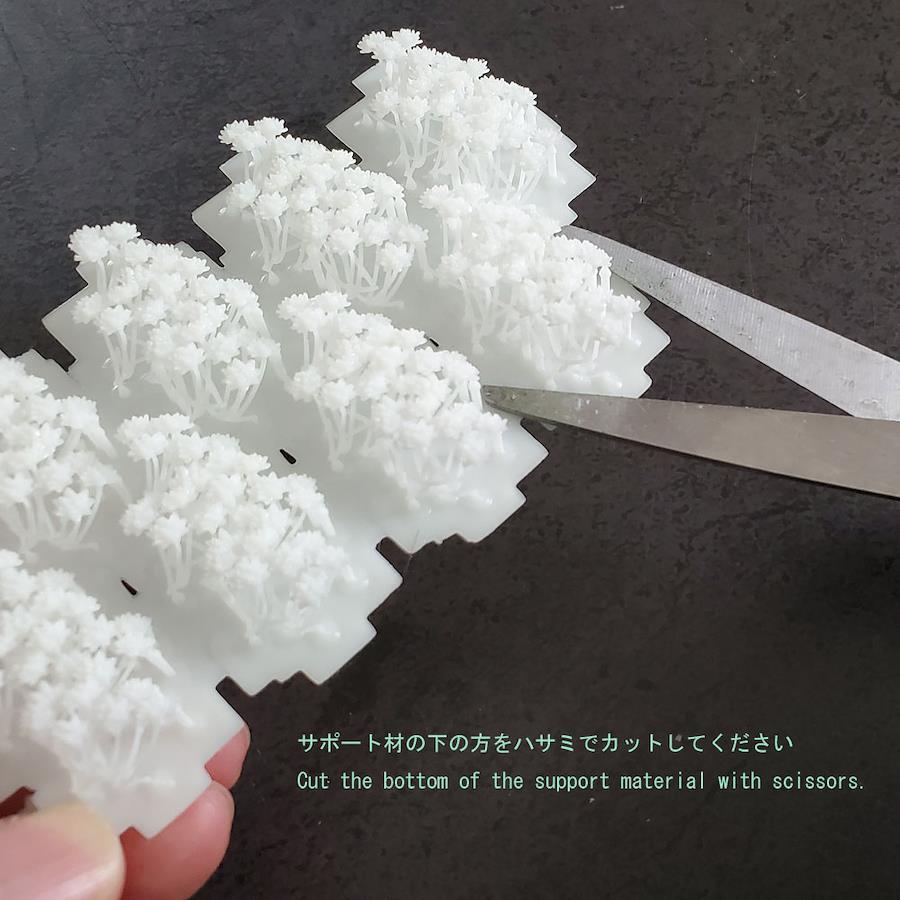 エアブラシ、缶スプレーなどで塗装し、サポート材をハサミなどで切り離してご利用ください。