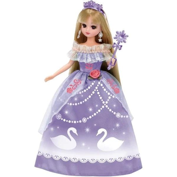 リカちゃん ドレス LW-12 ロマンティックスワン 淡い紫色ベースに白鳥のプリントがロマンティックなドレス。キラキラチュールと紫色のドレスに浮かぶ白鳥がロマンティックなデザインのドレスセットです。腰とオーバースカートにあるサーモンピンクのバラがポイント。ティアラ、イヤリング、ステッキ、クツ付き。【セット内容】ドレス(1),ティアラ(1),イヤリング(1),ステッキ(1),クツ(1),※人形は別売です。