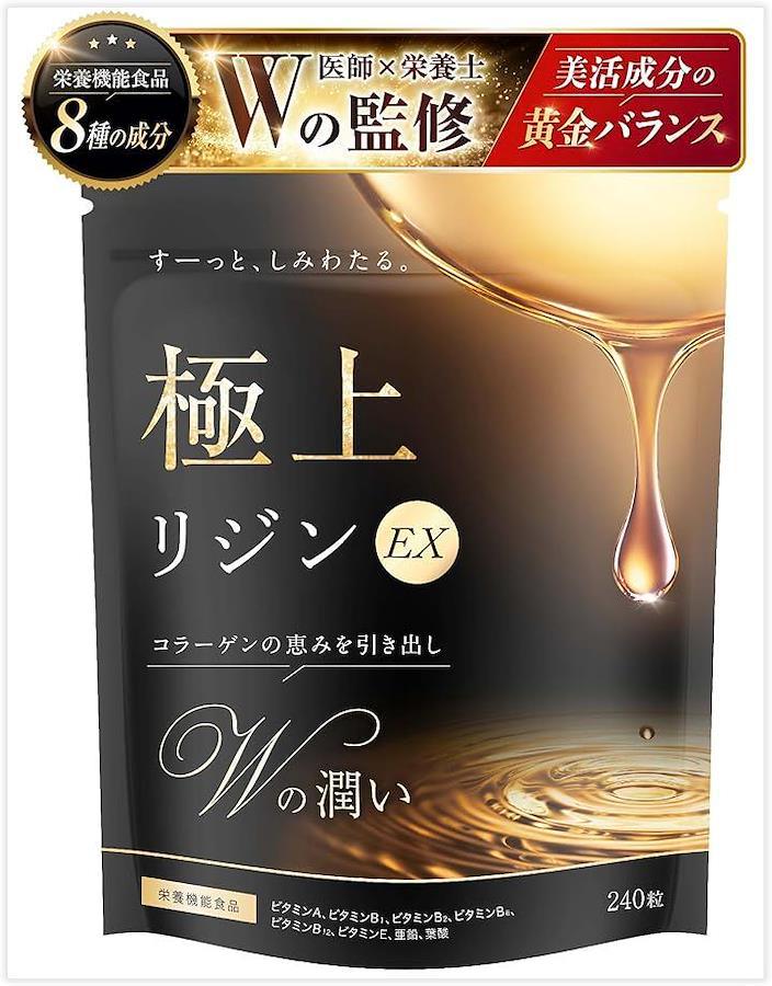 極上リジンEXは、良質なコラーゲンを構成するためのlリジンとプロリン、そしてそれをサポートするビタミンCをバランスよく配合しており美活効果を高めます。