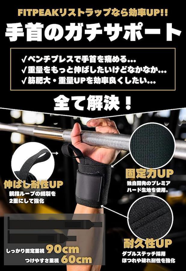 「重量UP・筋肥大効率UP」FITPEAKリストラップは筋トレでしっかり固定することに重きを置いた独自開発の極硬生地を採用. 開発者自身の筋トレの経験から、既存のリストラップのサポート力に不満があり、開発しました。