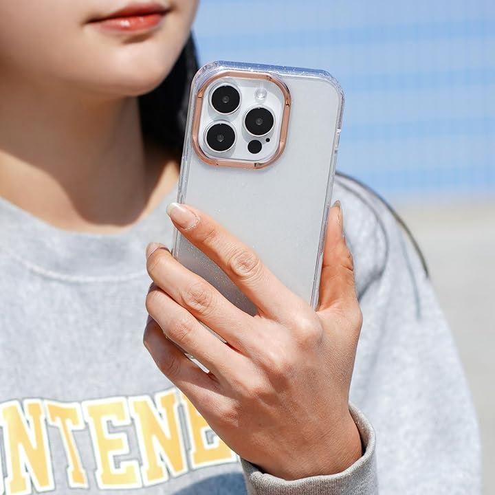 「上品さ溢れるキラキラ感」 ケース全体に散りばめられたラメが、見る角度によって様々な輝きを放ち、iPhoneを華やかに彩ります。