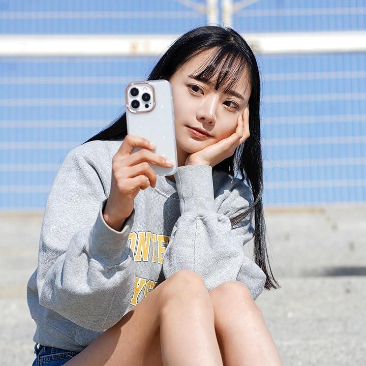 「上品さ溢れるキラキラ感」 ケース全体に散りばめられたラメが、見る角度によって様々な輝きを放ち、iPhoneを華やかに彩ります。