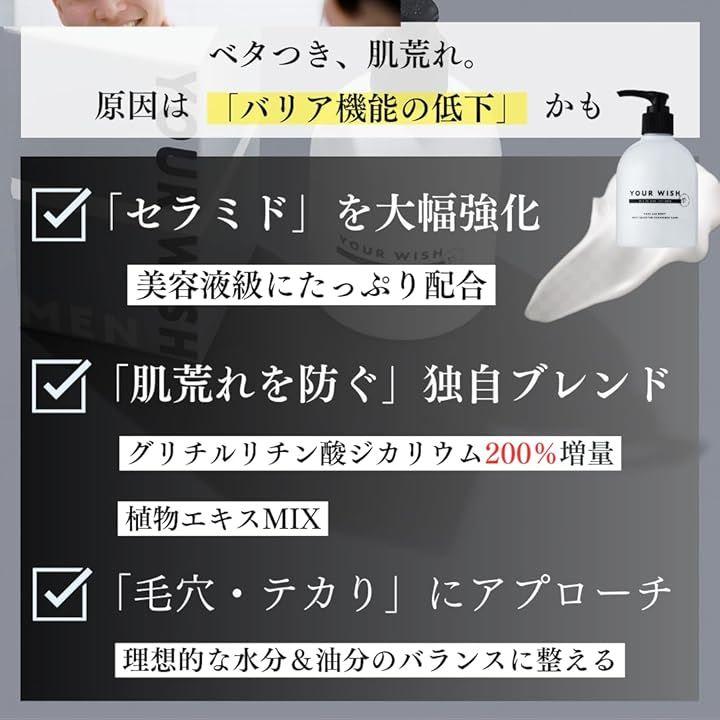 荒れがちな男性の肌をやさしく整える、低刺激にこだわった、贅沢な高保湿オールインワンセラム。