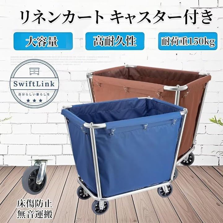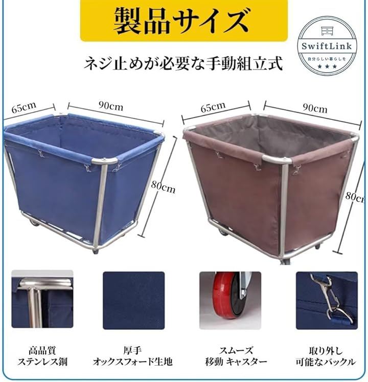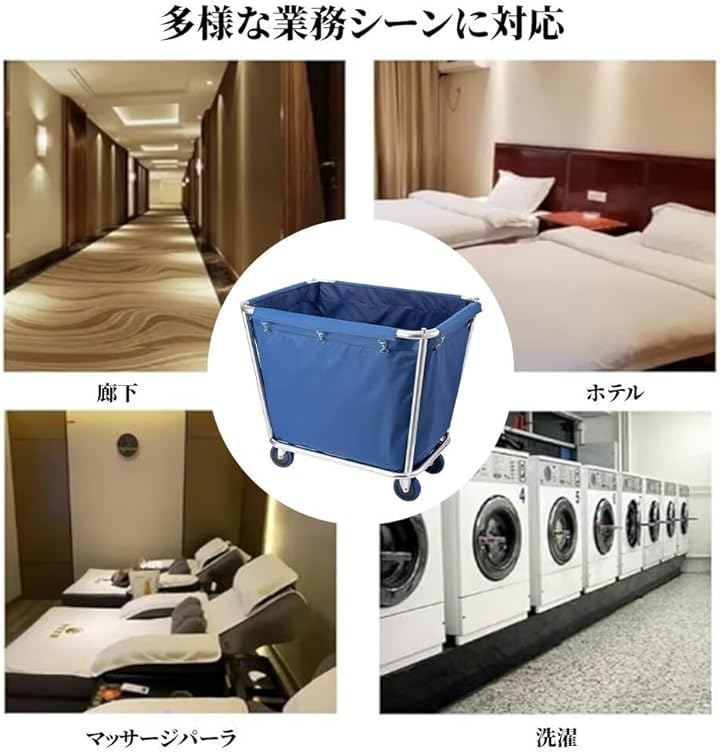 多様な業務シーンに対応:ホテル・病院・工場・学校・クリーニング店など幅広い商業施設向けに組み立て簡単な大容量ワゴンとして活用できる。