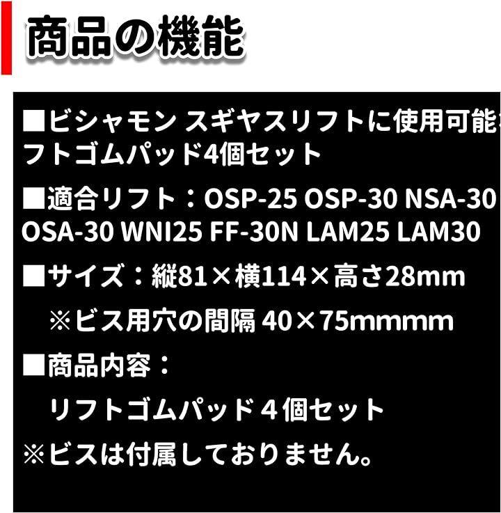 「適合モデル」 本商品は、ビシャモン、スギヤスリフトに対応したリフトゴムパッド4個セットです。