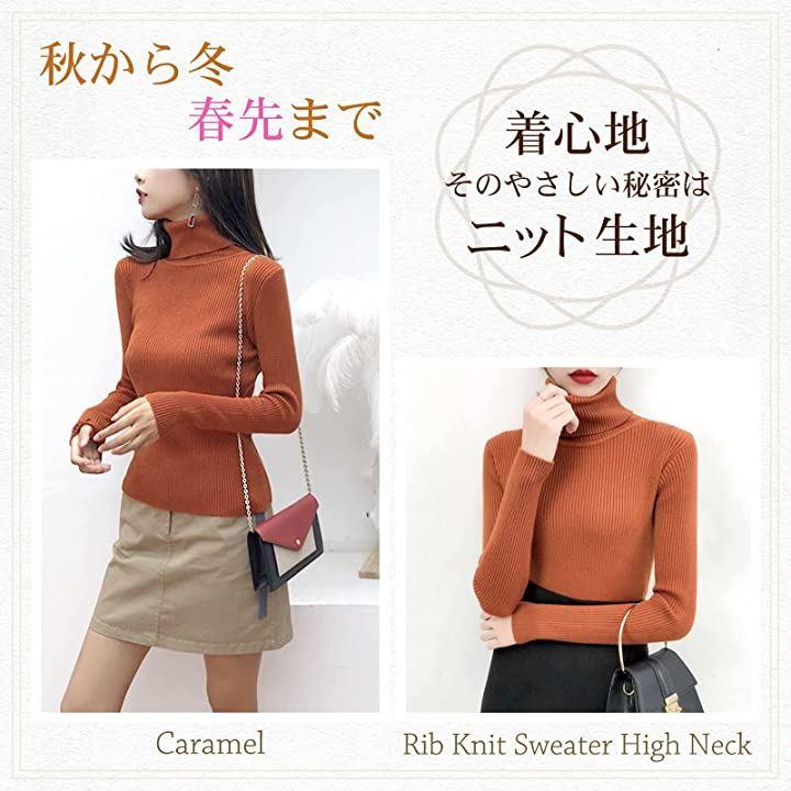 さらにニット生地なので秋から冬、春先まで着回しを楽しめるので、1着は持っておきたいトップスの一つです。・「シンプルだからこそトレンドを選ばず、コーデに取り入れやすい。」ジャケットやキャミソールワンピなどのアウターと重ね着をしたり、顔周りに華やかな小物と合わせたりすれば、好印象間違いなし。しかし、1枚でもお洒落なリブニットセーターなので、ちょっとしたおでかけや部屋着からデート、さらにはオフィスカジュアルとして仕事まで着回しできる優れものです。・「露出が控えめで上品に魅せてくれます。」上半身が華奢な方は、特にボディラインを美しく魅せてくれるのでおすすめです。