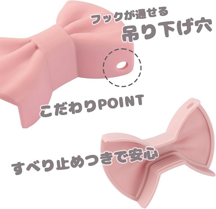 かわいらしいリボン型デザインが目を引く、シリコン製の耐熱鍋つかみです。