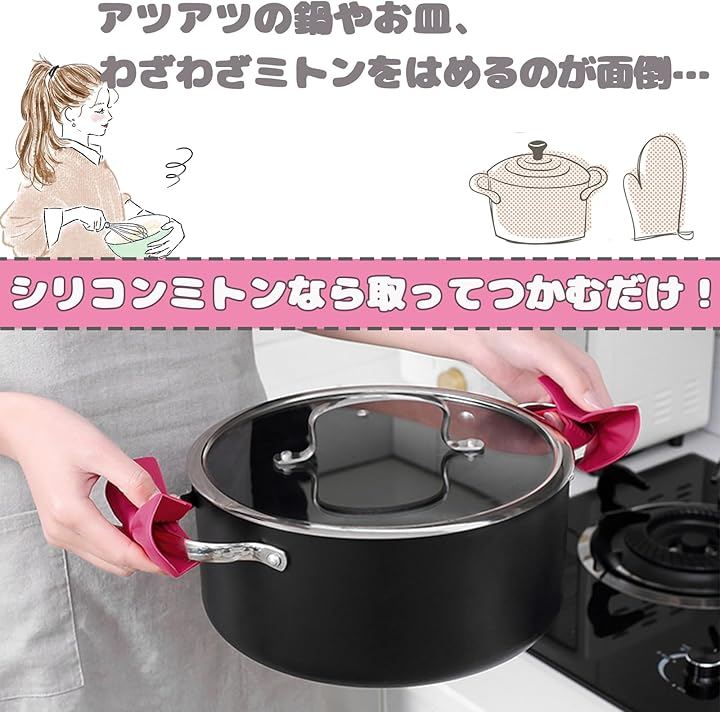 熱々の鍋や皿、電子レンジの容器、オーブントレイなども安心して持てるため、日々の料理を安全にサポートします。