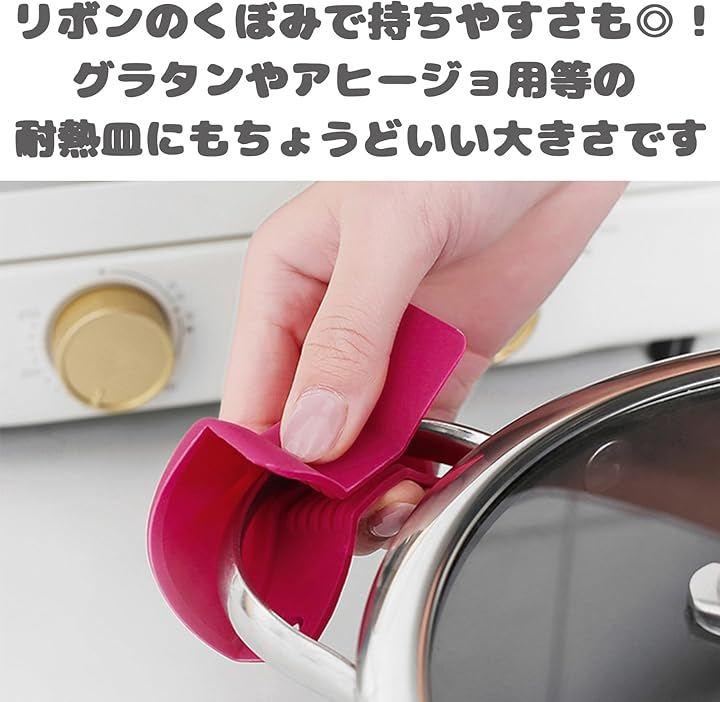 かわいらしいリボン型デザインが目を引く、シリコン製の耐熱鍋つかみです。
